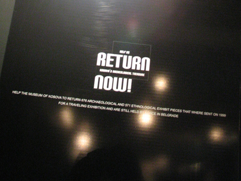 The search for ancestors is a key task of nation-building. To root the present into the past – and the older the better – it is essential to substantiate and embellish any claim over a territory. Thus, it is not surprising that one of terrains on which the battle for the control of Kosov@ is/was fought is the ownership and meaning of the items found in the region. In the museum there are a lot of empty windows and spaces. Posters here and there call for international support to the campaigning for the return of hundreds of pieces taken/borrowed by Serbia in the immediate aftermath of the war in 1999.