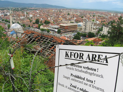 A differenza di Pristina, a Prizren la presenza armata della KFOR e’ molto piu’ presente e visibile. Le jeep dei soldati tedeschi girano nell’area pedonale mentre tra le centinaia di studenti in gita impazza una mega battaglia con le pistole ad acqua e poco distante per un tempo infinito si svolgono danze tradizionali.