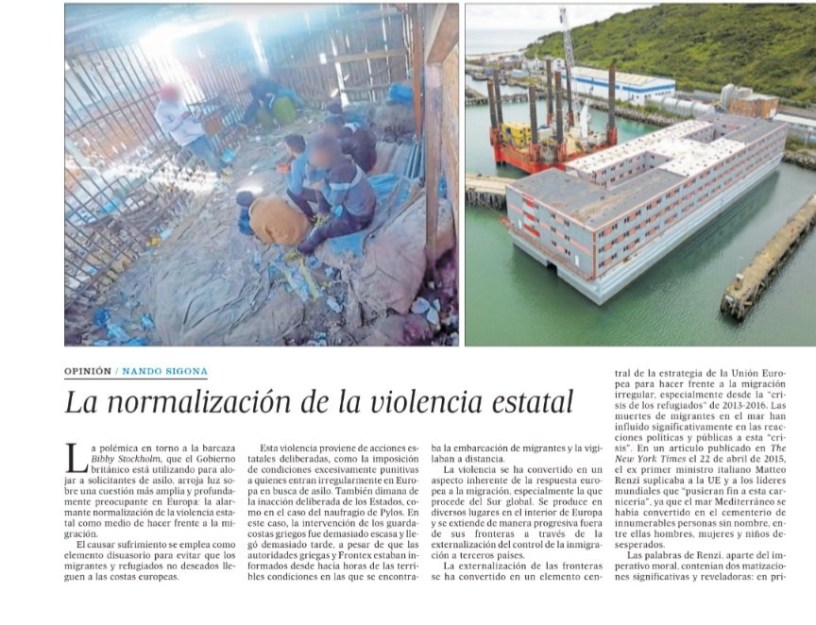 On 3 September a comment piece I wrote for El Pais was published as part of a 4-page investigation into border violence against migrants and refugees. In the article I argue that violence has become an inherent aspect of Europe’s response to migration, particularly from the Global South. It occurs across various sites within Europe and is increasingly extended beyond its borders through the outsourcing of immigration control to third countries.