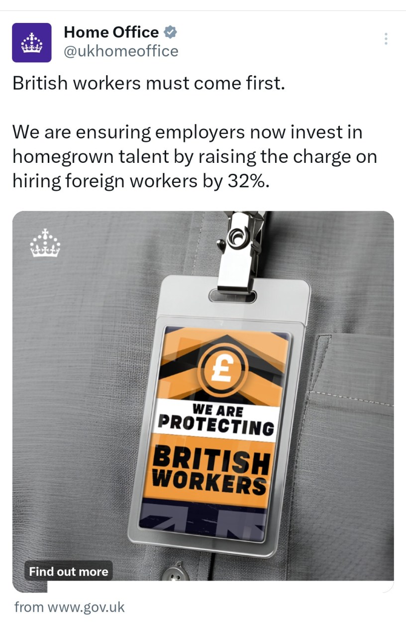I deleted the first version of this Bluesky post because of a typo — given the Home Office’s obsession with “English proficiency”, you never know what the language police might be up to next. But the more I think about it, the more revealing this kind of messaging becomes. To millions of foreign-born Britons — including those like me who are now naturalised — such government campaigns read less like public information and more like a warning: “Stay in your place, keep your head down — you’re on borrowed time.”